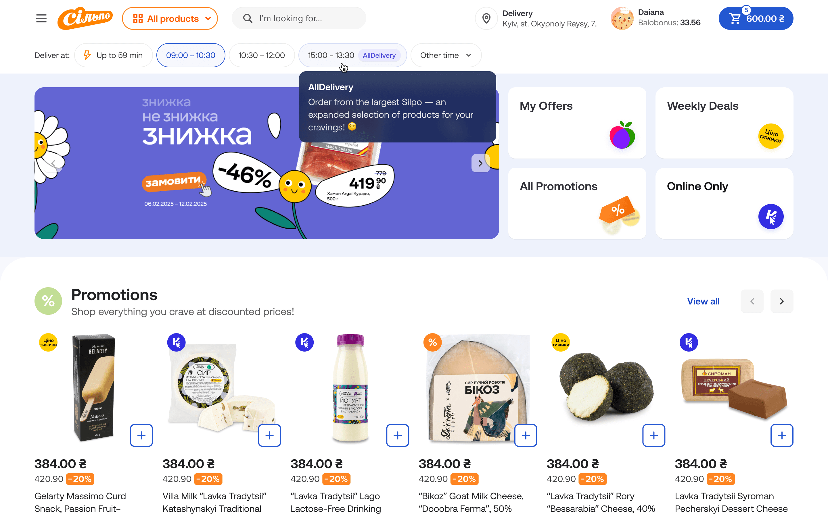 Most web sessions start with traffic from Google or paid ads landing directly on a product page. However, users often leave because the product is out of stock at their nearest Silpo store. Now, products unavailable locally are accessible through the new service, with delivery available in a later time slot.
