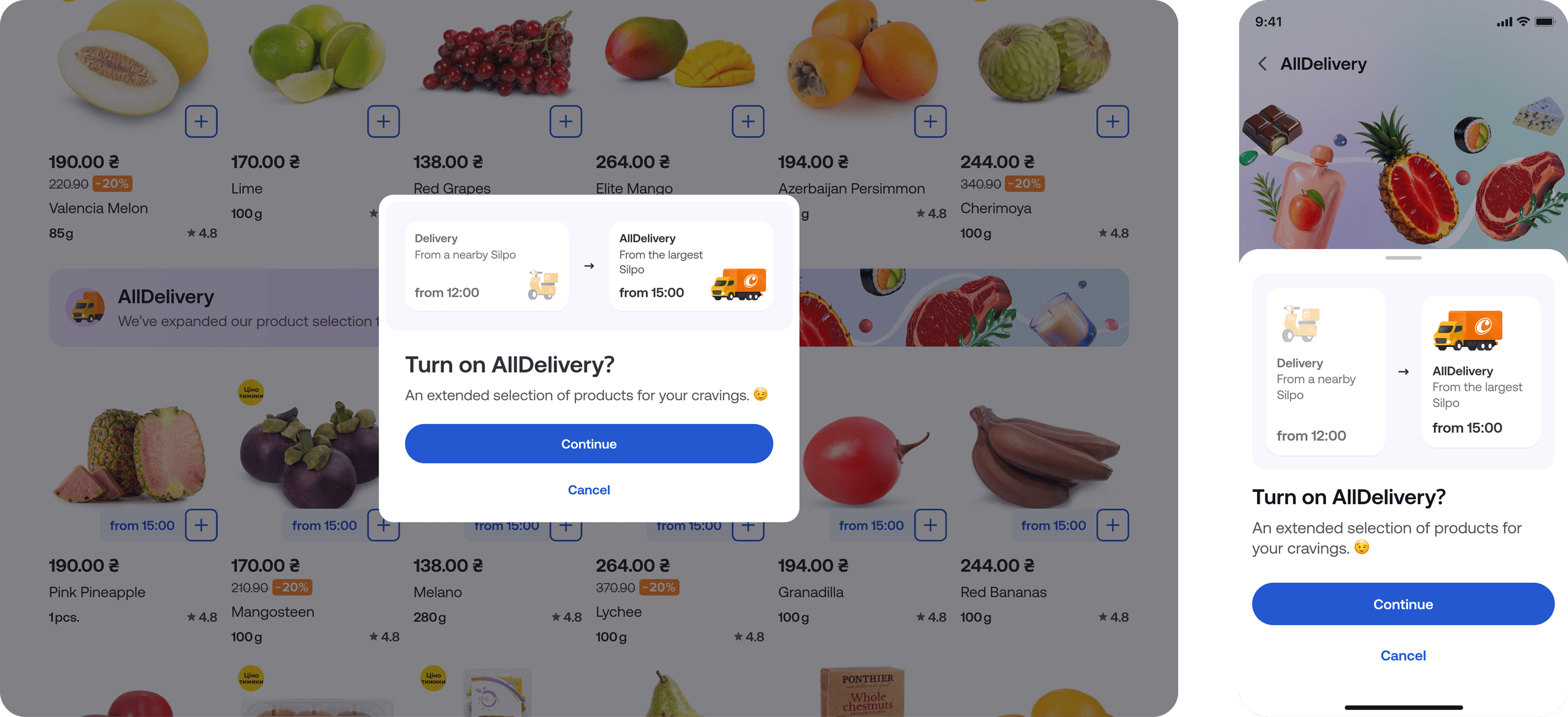 Silpo E-com includes a delivery app and web platform that power the end-to-end online grocery experience — from product discovery to checkout and fulfillment.