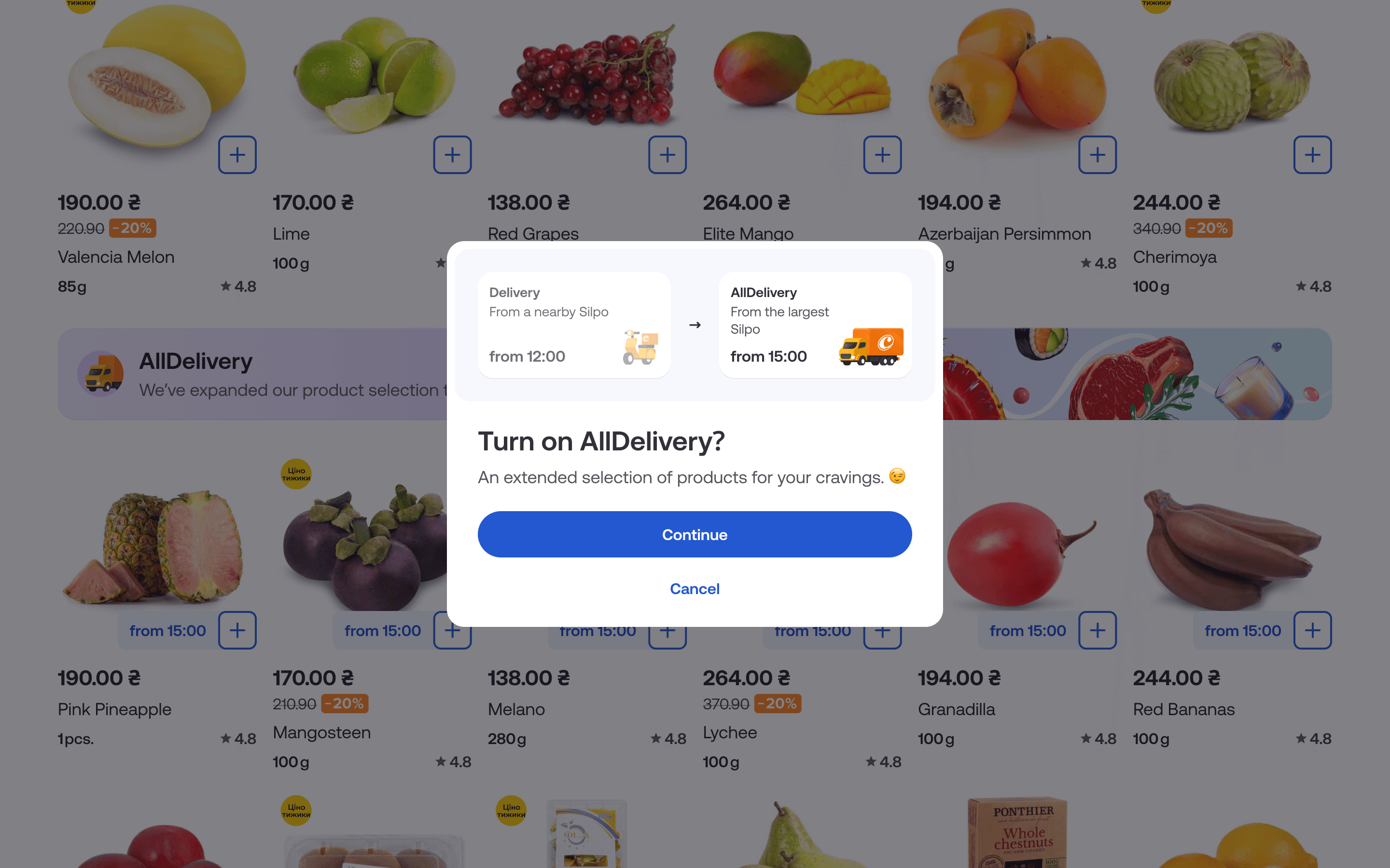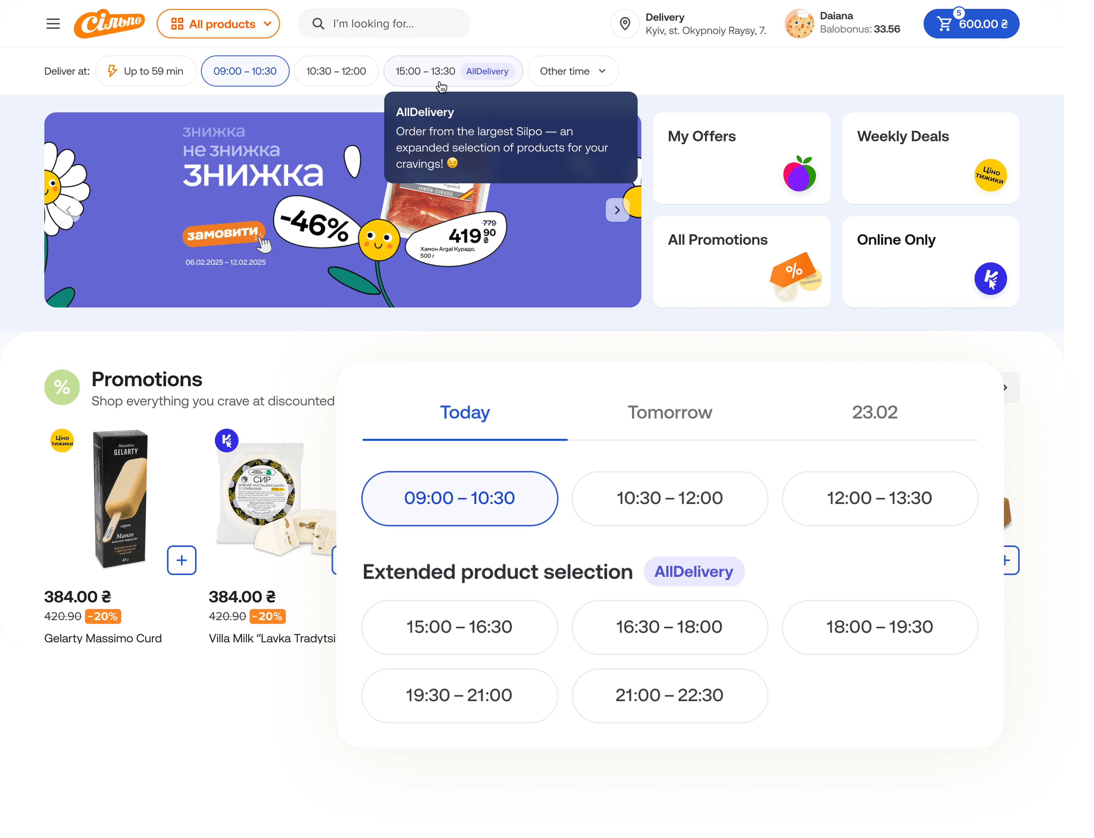 We unlocked access to products unavailable in the nearest Silpo store by offering delivery from the dark hub in a later time slot.